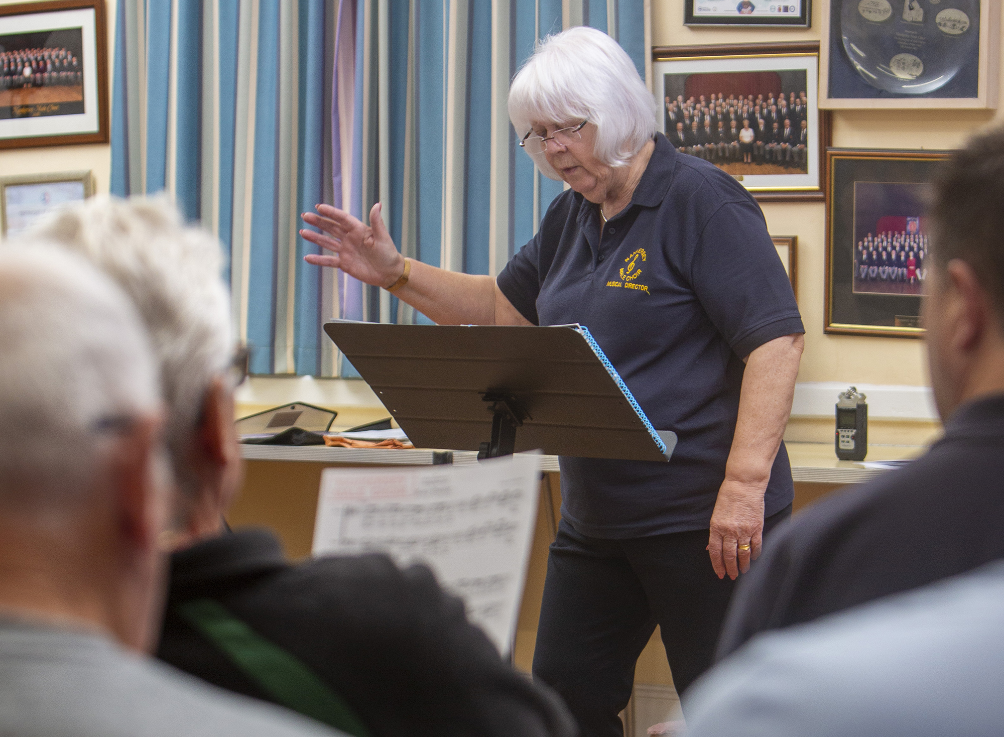 (right: our MD Elaine Tangye at choir practice)